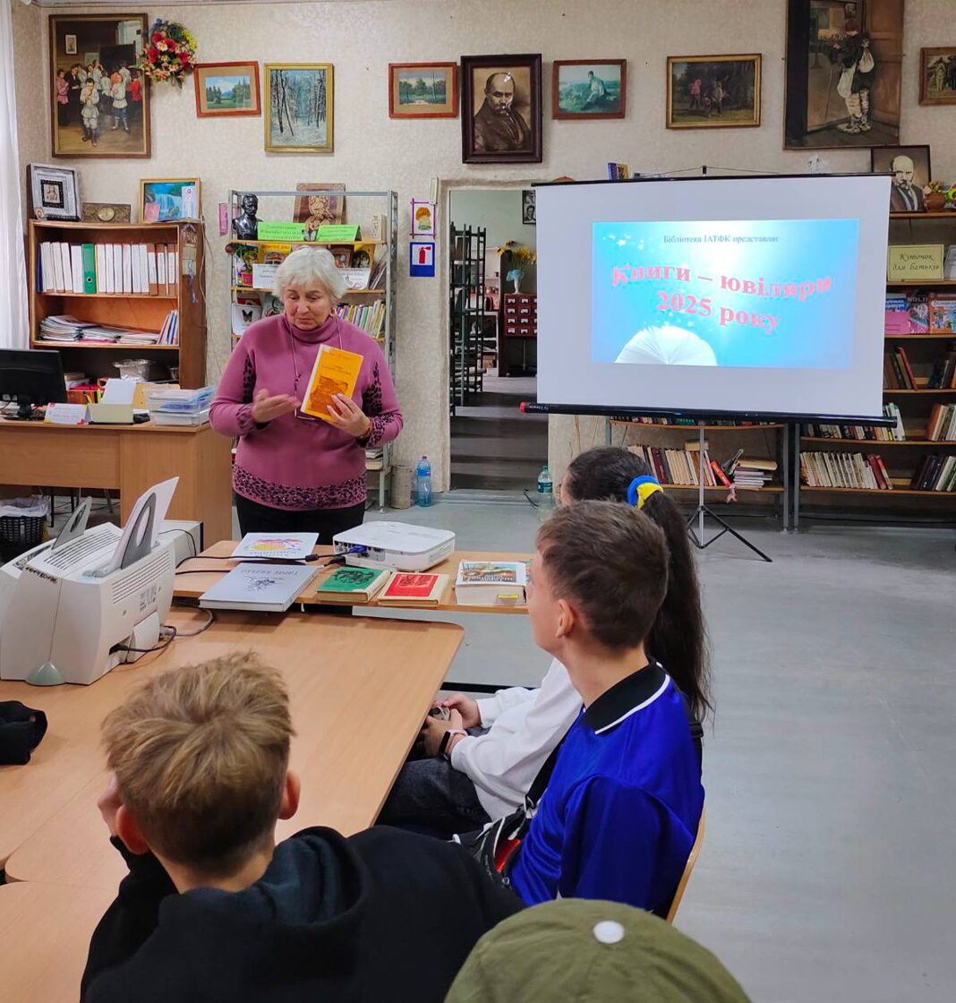 Здобувачі освіти 9-А класу долучилися до його діяльності. Дев’ятикласники мали змогу прослухати цікаву розповідь про «Українські книги-ювіляри», дізнатися нові факти про видатних письменників та їхні твори, які стали невід’ємною частиною нашої культурної спадщини.